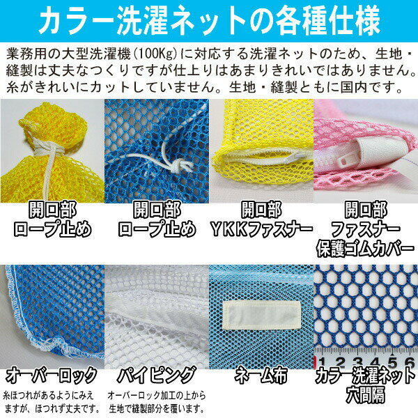 カラー洗濯ネットM 丈夫な業務用洗濯ネット 衣類のお洗濯用として 枕干しにも便利 口はロープどめ