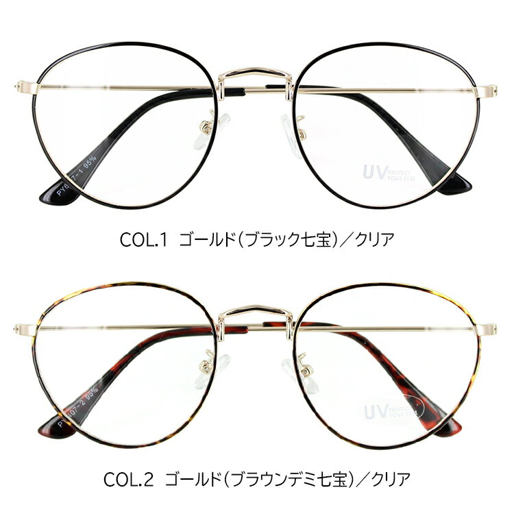伊達メガネ だてめがね ダテ メンズ レディース おしゃれ トレンド ファッション 眼鏡 クリアレンズ ボストン メタルフレーム UVカット PY6407 2カラー ゴールド ブラック ブラウンデミ 定形外選択で送料無料★新着